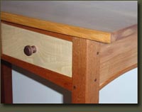 A figured red birch top, long mahogany legs,